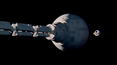 Упоминание данного фрагмента принципиально важно для понимания замысла фильма и, следовательно, для более точного анализа функции образа космического корабля в данном контексте. Как уже упоминалось ранее, пик рациональности, изображенный в фильме в целом и во внешнем виде корабля в частности, вызывает некоторое отторжение из-за своей инородности, непривычности для человеческого сознания, однако эта сцена дает понять, что преодоление подобных чувств и продолжение развития технологий ведет к эволюции общества, открытию новых границ познания.