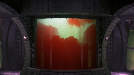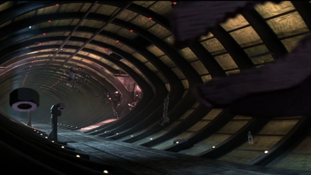 Коридор, ведущий к помещению, в котором находится ядро, состоит из острых постоянно вращающихся структур и напоминает устройство мясорубки, о чем также говорит один из героев. Данный визуальный образ подчеркивает то, какую опасность для человека могут нести технологии: сложный механизм, чье строение полностью оправдано с научной точки зрения, предстает в виде прямой угрозы безопасности людей и вызывает, казалось бы, иррациональное чувство страха.