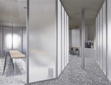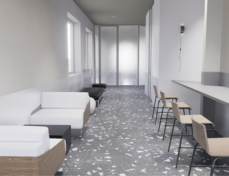 Интерьер учебного кластера построен на диалоге аутентичных материалов: холодное стекло и металл, массивный камень и тёплая кожа, фактурное дерево. Их лаконичное и строгое сочетание создаёт среду, свободную от суеты.