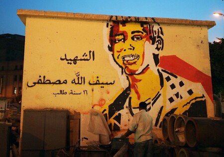 Фреска, критикующая военное управление в Египте, изображает столкновение военного танка с простым разносчиком хлеба. В египетско-арабском языке слово «хлеб» имеет схожее значение с понятием «жизнь».