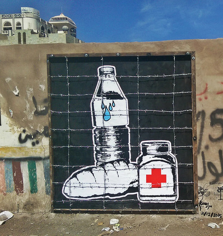 В 2015 году в Секторе Газа, на фоне разрухи, появилось граффити Бэнкси в виде милого котёнка с розовым бантом. Этот контраст отражает тяжелое положение жителей сектора: перебои с электричеством, непригодная для питья вода, многочисленные жертвы обстрелов и ограничения на выезд.
