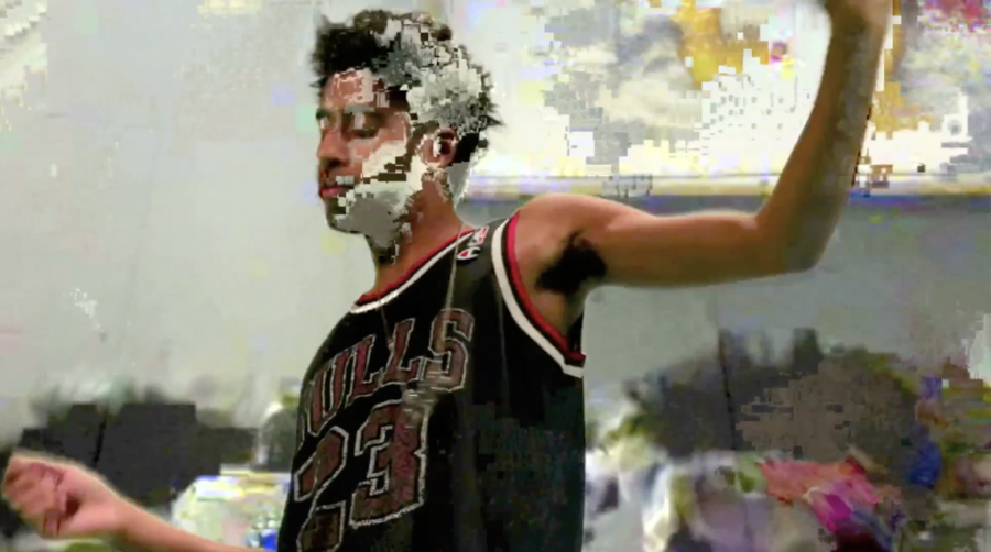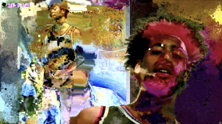 Контуры артиста «плывут», фон сдвигается и сливается с фигурой, цветовые поля вспыхивают и распадаются. Кадры из клипа Yung Jake — Datamosh