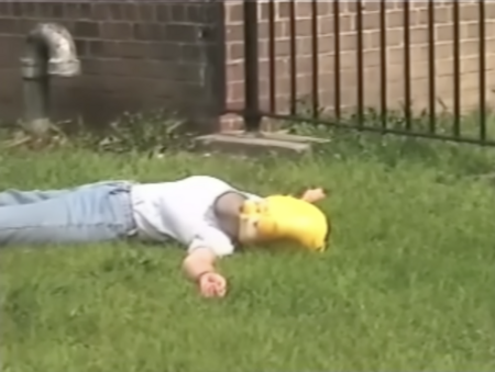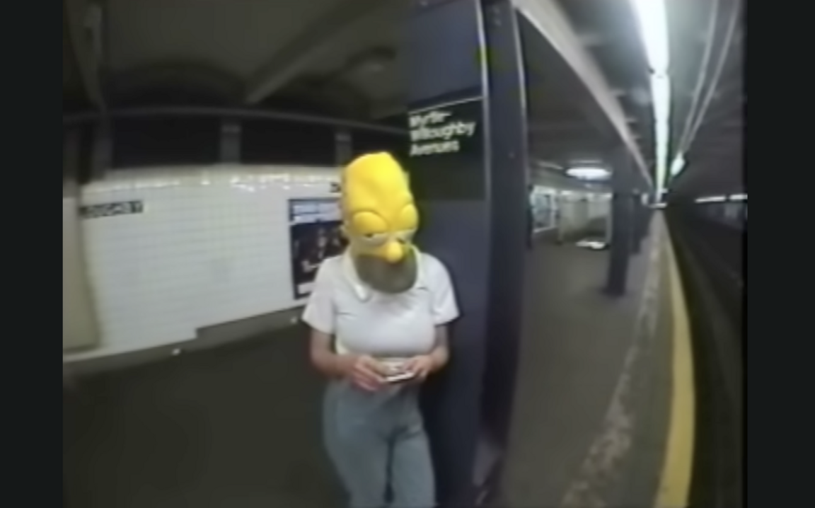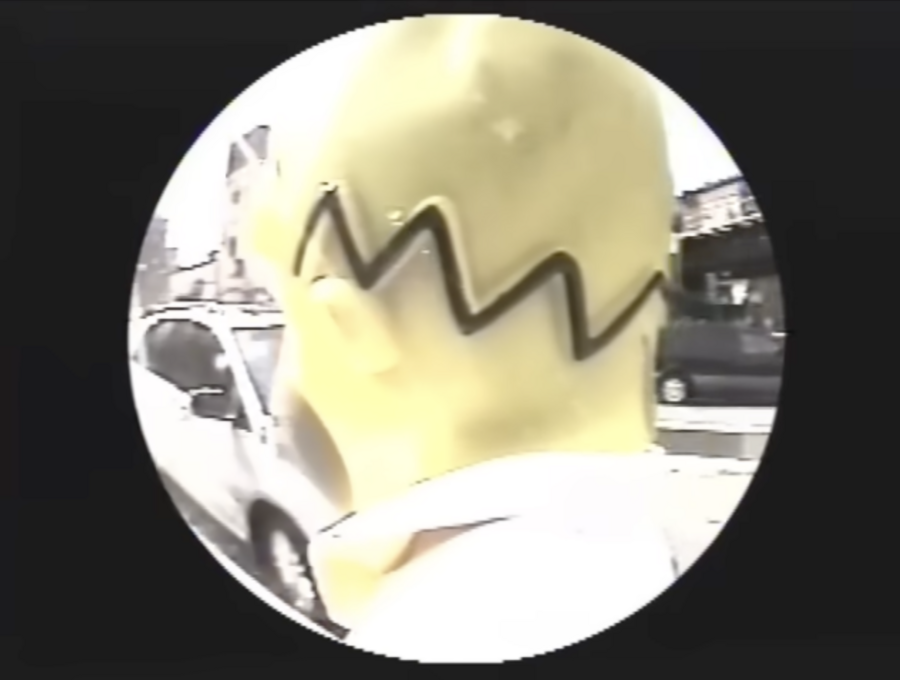 Начало клипа. Девушка в маске героя мультфильма «Симпсоны» Гомера Симпсона. Кадры из клипа Mac DeMarco — Chamber Of Reflection (Official Video)