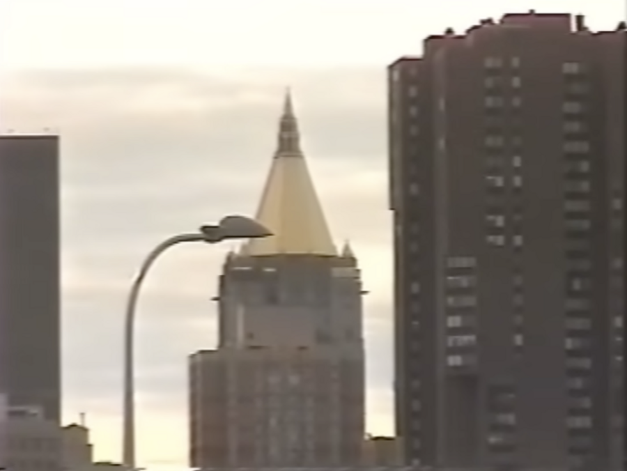 Когда персонаж выходит на более широкую локацию, пространство вокруг кажется пустым и тихим. Снимается это всё в той же VHS-манере: цвета выцветшие, свет чуть искажён, есть ощущение «магнитной пыли» на картинке. Этот кадр символизирует момент паузы, когда герой как будто остаётся один на один с собой.