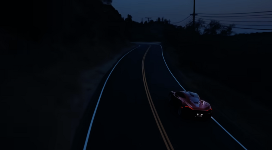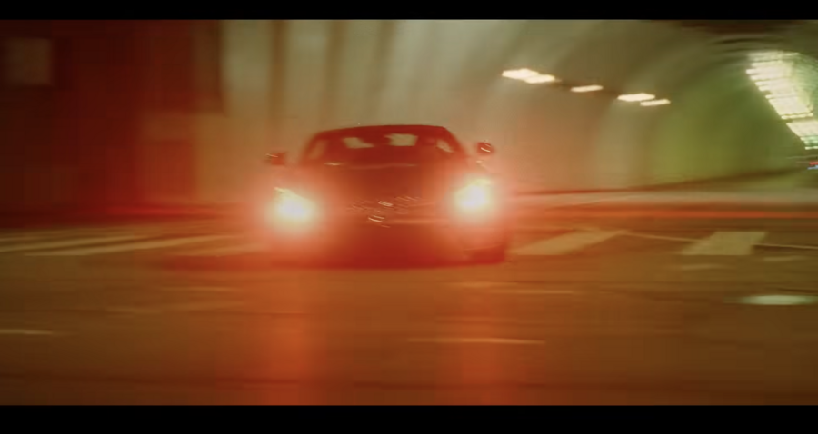 Одна из центральных эстетических линий клипа — ночная поездка на суперкаре по городу. Здесь визуальный стиль становится почти как в компьютерной игре: чёткие линии света, отражения, похожие на рендер, высокая контрастность, неоновая цветовая палитра. Город выглядит не как реальное пространство, а как виртуальная сцена: будто перед зрителем не видеосъёмка, а стилизованный симулятор.