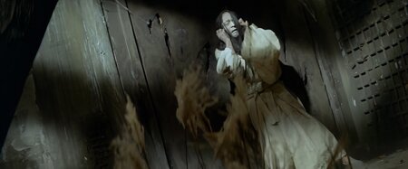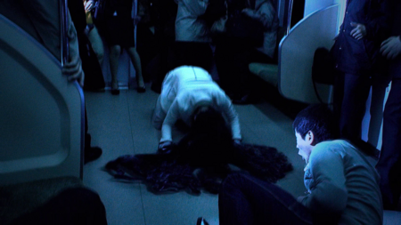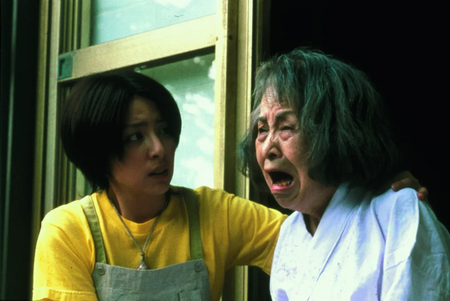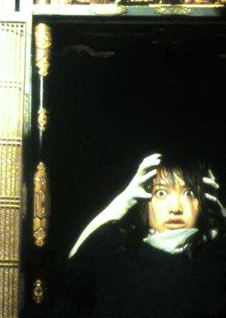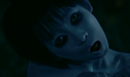В фильме «Проклятье 2» (2006, реж. Такаси Симидзу) режиссёр, ранее создавший канонический образ Каяко, начинает играть с шаблоном собственных же визуальных решений. Женщина-призрак появляется в неожиданных комедийно-абсурдных ракурсах, её движения нарочито гипертрофированы, а мимика — почти гротескна. Симидзу осознанно разрушает нормиативность образа: призрак не вызывает ужас — он вызывает смещение, дезориентацию, иногда даже нервный смех. Так происходит деконструкция через гиперболу: чем более канонически выглядит призрак, тем меньше он пугает. Этот фильм показывает, что японская аудитория начала «привыкать» к стереотипу юрэй, а кино отвечает, разрушая шаблон изнутри.