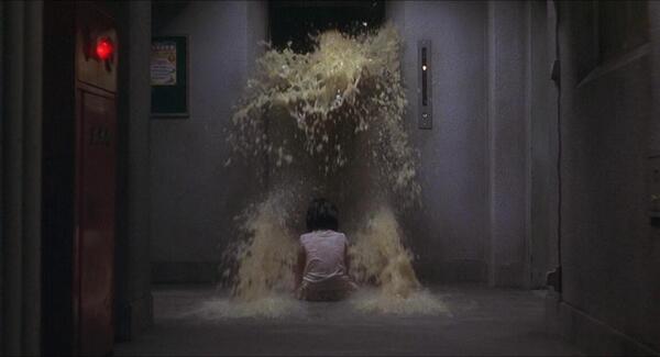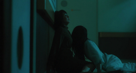В фильме «Темные воды» (2002, реж. Хидео Наката) женско-детский призрак Мицуко представляет собой метафору потери, заброшенности и социальной невидимости. Она появляется как девочка, утонувшая в резервуаре на крыше заброшенного здания, и её образ связан не с местью, а с желанием вернуть внимание матери. Этот образ играет ключевую роль в развитии жанровой функции «призрака-ребёнка», который в японском кино часто связан с женской травмой материнства и городским отчуждением. Сцены появления Мицуко всегда включают воду, тусклое освещение, капли и влажные поверхности — что делает призрак частью визуального языка утраты.