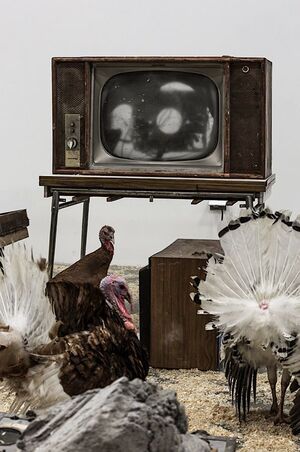 Работа Дэвида Хила буквально демонстрирует нам, что явления, которые существуют в рамках телевизора, не имеют никакого влияния на наш мир. Вроде бы да, мы видим, как вода заполняет экран, но в самом телевизоре ведь не появляется вода, если бы она там была, он бы попросту вышел из строя. Далее мы видим, как вода вытекает из телевизора, но пол в гостиной остаётся сухим, тогда куда вытекла эта вода, да и вообще была ли тут вода? И этот вопрос можно задать всему тому, что мы видим на телеэкране.