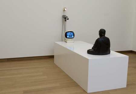 Работа «ТВ Будда» Нам Джун Пайка (1974) становится одной из первых, в которой наблюдение перестаёт быть простым актом фиксации извне. В инсталляции статуя Будды сидит напротив телевизора, в который транслируется её же изображение в реальном времени. Таким образом, Будда становится одновременно наблюдателем и объектом наблюдения — он смотрит на себя, и этот замкнутый круг устраняет всякое различие между субъективным и объективным.