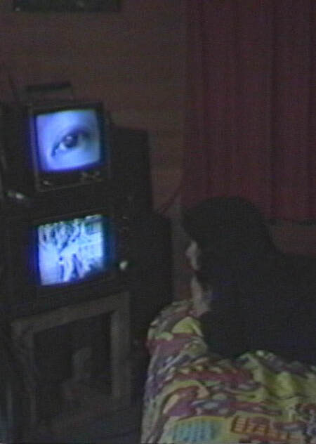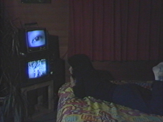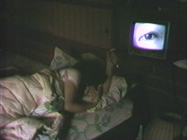 Из этой логики наблюдения за наблюдением логично вытекает видео «Ещё один день домохозяйки» Мако Идэмитсу (1977). Художница фиксирует свою повседневную женскую рутину, сопровождая её видеомонитором, встроенным в интерьер, откуда на неё «смотрит» мужской глаз. Как и у Пайка, в этой работе зритель вынесен за скобки: он больше не напрямую смотрит на действия, а скорее наблюдает за системой, в которой субъект находится под наблюдением. Здесь глаз телевизора становится почти насильственным символом внешнего взгляда, впаянного в бытовую ткань жизни.