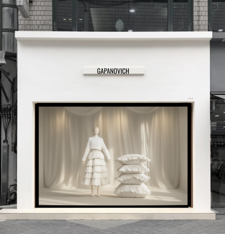 Создание витрин как пространства воспоминаний и тактильных ассоциаций детства через объем, мягкость и многослойность материалов.