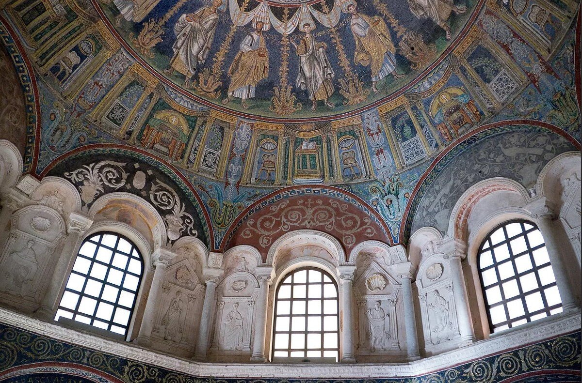 Мозаика апсиды базилики Сан-Витале в Равенне // https://upload.wikimedia.org/wikipedia/commons/thumb/c/c7/Vault_mosaic_-San_Vitale-Ravenna_2016.jpg/960px-Vault_mosaic-San_Vitale-_Ravenna_2016.jpg