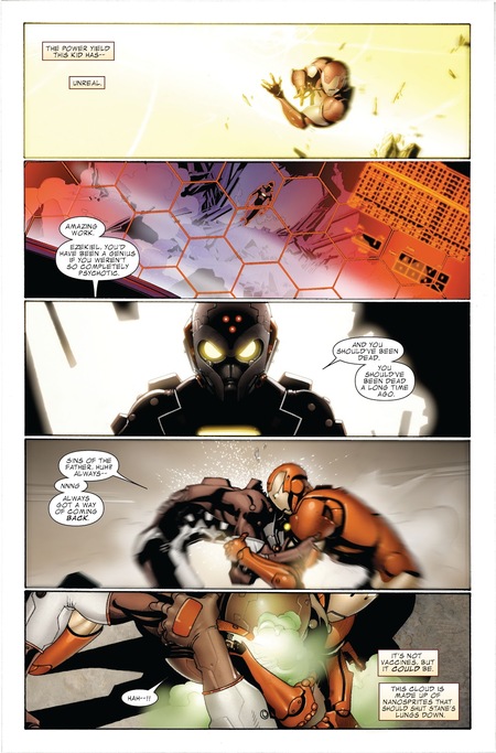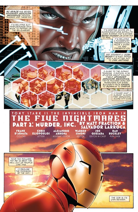 Комикс «Invincible Iron Man» / Выпуск № 5 / Мэтт Фрэкшн, Сальвадор Ларрока (илл.). — 2008. URL: https://readcomiconline.li/Comic/Invincible-Iron-Man-2008/Issue-5?id=10137