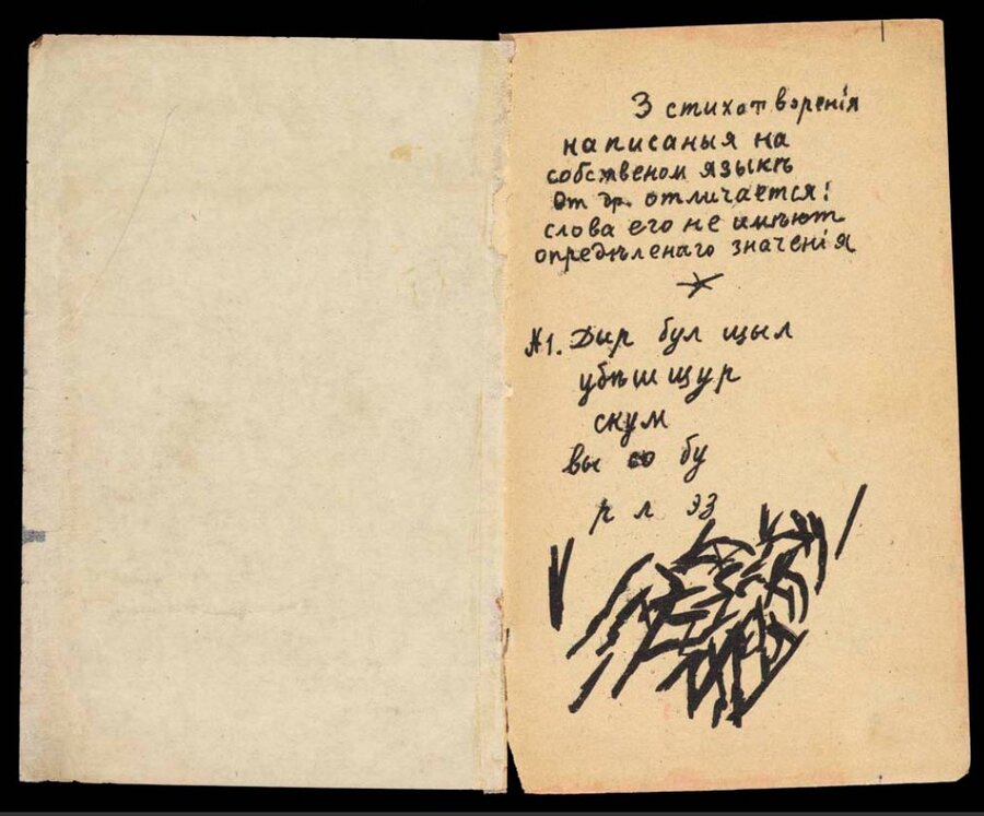 | || Велимир Хлебников и Алексей Крученых: стихотворение: «Дыр бул щыл» и их манифест «Слово как таковое», 1913 |||Филиппо Томмазо Маринетти: «Технический манифест футуристической литературы», 1912
