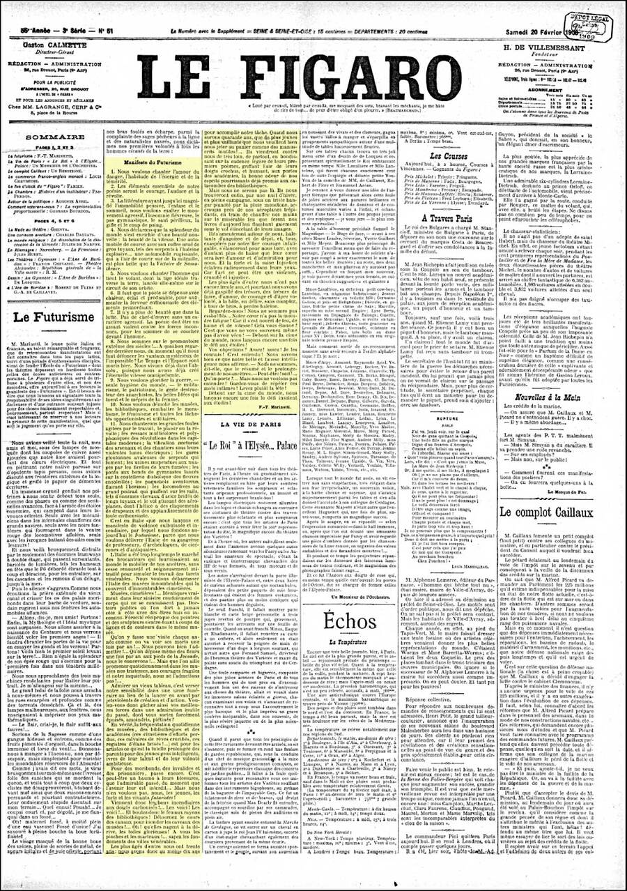 1909 г. — публикация манифеста футуризма Маринетти, отправная точка авангардной атаки на традицию. 1939 г. — начало Второй Мировой войны и фактический конец «исторического авангарда» как целостного проекта.