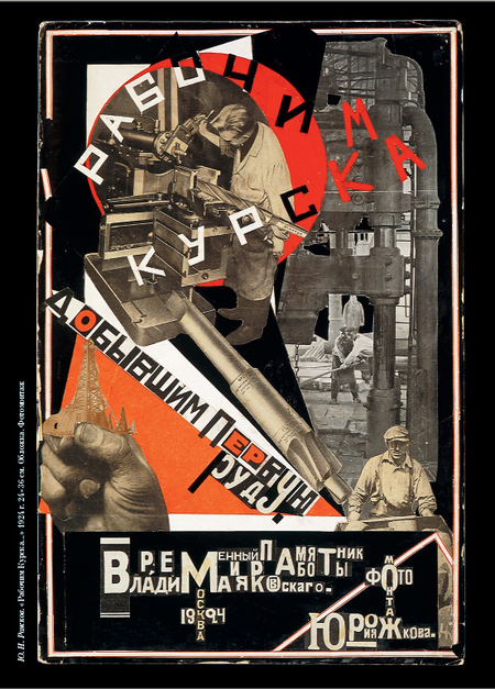 Юрий Рожков. Обложка и фотомонтажи к поэме В. Маяковского «Рабочим Курска, добывшим первую руду…» (1924)