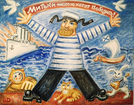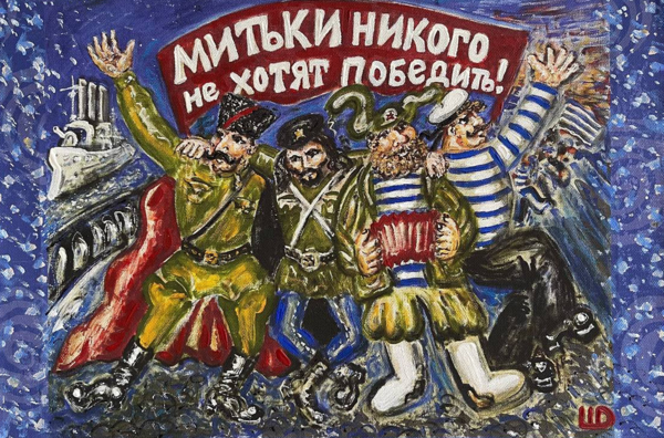 «Митьки никого не хотят победить!» (авторская копия в технике жикле) / Дмитрий Шагин / Не позднее 2024 // «Митьки» / Дмитрий Шагин / Не позднее 2010