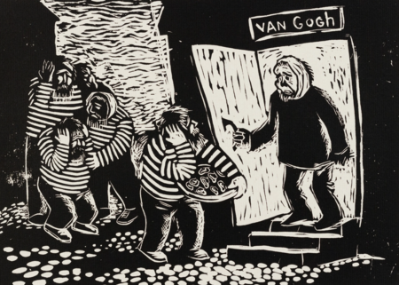 «Митьки помогают Менделееву клеить чемоданы» / Василий Голубев / 1987 // «Митьки приносят Ван Гогу отрезанные уши» / Василий Голубев / 1987