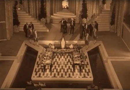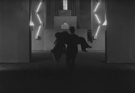 В «Бесчеловечной» кадры часто строятся на симметрии. Персонажи поддерживают ее, органично устраиваясь в окружение. Это позволяет сохранить геометричность пространства, вдохновленного кубизмом.