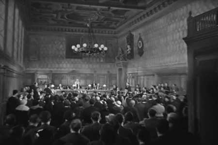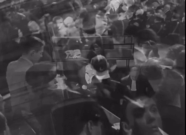 Также в фильме вновь используется многослойная композиция. Она передает хаотичность и пик эмоциональности во время судебного процесса, показанного в фильме. Наличие таких смелых и выразительных эффектов говорит о том, что автор не отказывается полностью от авангардных приемов, а только сокращает их до минимума, что усиливает их эмоциональное воздействие на зрителя.