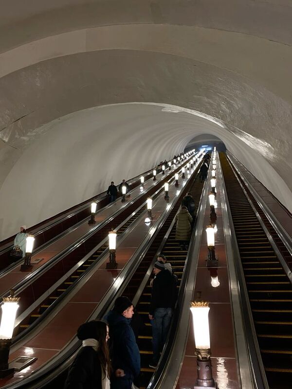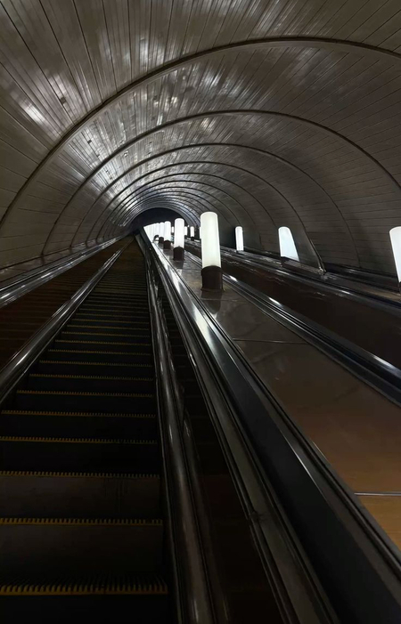 Монотонный низкочастотный гул эскалатора, функционируя как ключевой звук метрополитена, формирует акустический фундамент пространства. Его физические вибрации погружают пассажира в особое сенсорное состояние, которое способствует переходу к внутренней сосредоточенности. Это приводит к снижению вербальной активности и фиксации взгляда: люди замирают, не разговаривают и смотрят в одну точку.