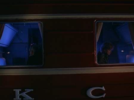 Кадры строятся так, что пространство маленькое, но не давящее. Это наоборот будто усиливает чувства, захлестнувшие героев. Будто весь мир сузился только до них двоих. Закрытое пространство купе не давит, а наоборот защищает. Впервые замкнутость работает в пользу человека, а не системы