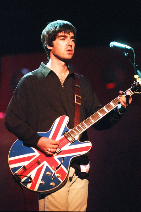 Джерри Холливелл на музыкальной премии Brit Awards, 1997 г.; Ноэль Галлахер со своей культовой гитарой Union Jack Epiphone, 1996 г.