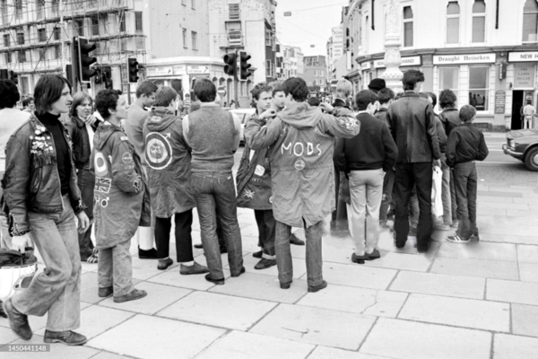 Моды на Brighton Beach, 1964 г.; Группа The Jam на Carnaby street стрит, 1979.