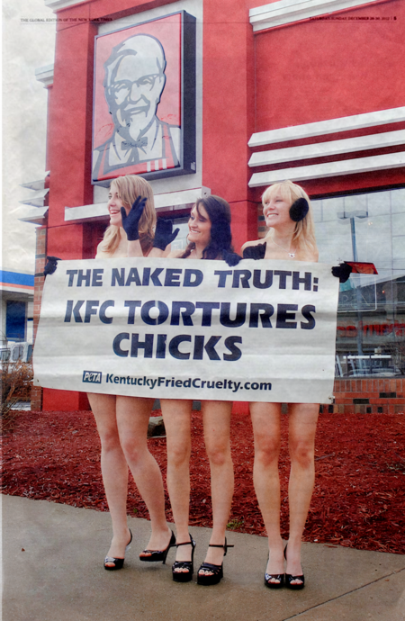 Демонстрация плаката «Голая правда: KFC пытает цыпочек» в рамках рекламной кампании «KFC Scalds Chicks to Death», Эри, Пенсильвания, 2009