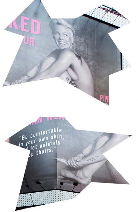 Баннер с участием певицы Pink в рамках рекламной кампании «I’d Rather Go Naked Than Wear Fur» («Лучше я буду голой, чем в мехе»), Таймс-сквер, США, 2015. — URL: https://www.peta.org/wp-content/uploads/2015/02/Pink-billboard.jpg (дата обращения: 14.11.2025).