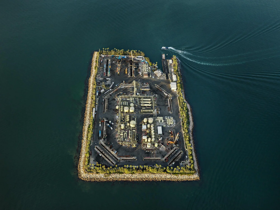 В серии «Нефть» Буртинский показывает, как устроена нефтяная инфраструктура в широком масштабе: от мест добычи до зон переработки и конечного использования. Он снимает добывающие площадки, заводы, хранилища, порты и транспортные коридоры.