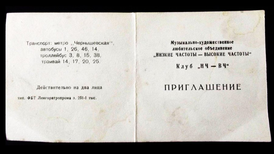 Пригласительный билет в клуб «НЧ/ВЧ». Конец 1980-х. Архив Игоря Хадикова