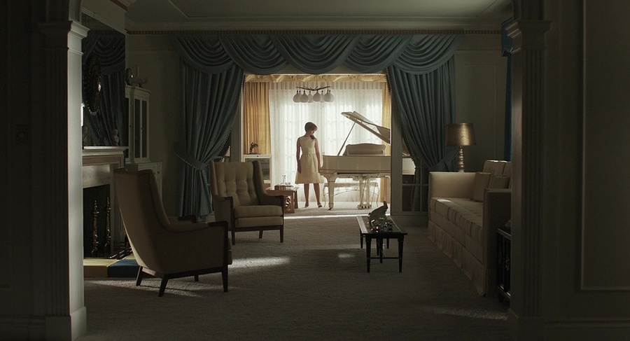 В «Девственницах-самоубийцах» дом семейства Лисбон становится утробой и тюрьмой одновременно. Белые занавески, приглушённый свет, застывшие девичьи позы создают эффект эфемерности. Камера снимает героинь через окна, сетки, слои ткани, словно между зрителем и персонажем стоит вуаль.