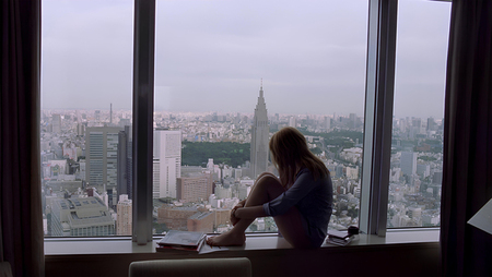 София Коппола несколько раз в своей работе изображает героиню фильма Шарлотту у окна, и, конечно, делает это не просто так. Статичный кадр сзади, мягкое освещение, стеклянное панорамное окно, разделяющее чужой город и наблюдающую за ним девушку. Эти сцены подчеркивают ее чувство изоляции и размышления о своем месте в мире.