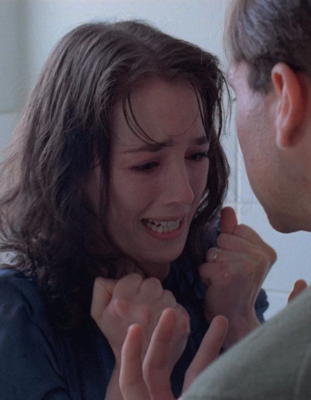 В какой-то момент Жулавски полностью ломает четвертую стену [3], тем самым заставляя зрителя чувствовать себя максимально некомфортно. Теперь уже происходящее на экране — не просто чья-то фантазия, снятая на пленку. Это невероятная игра Изабель Аджани, погружающая смотрящего в пучины безумия своей героини.