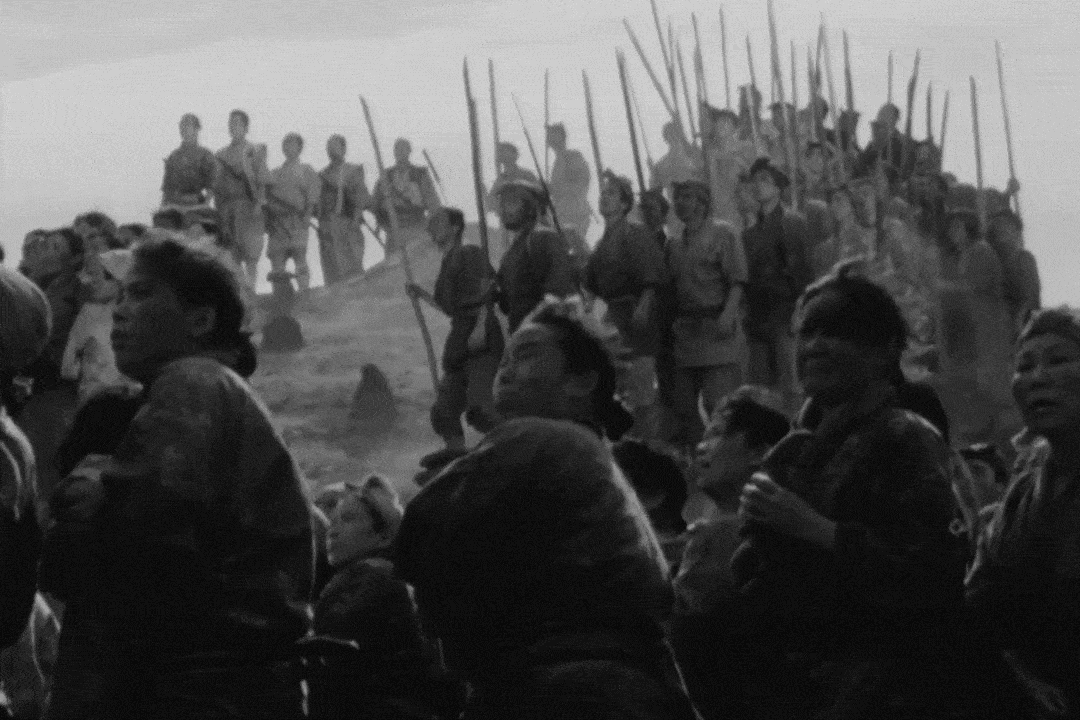 Кадры из фильма «Семь самураев» (реж. Акира Куросава, 1954)