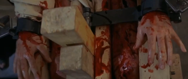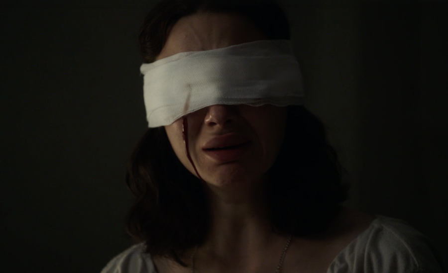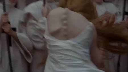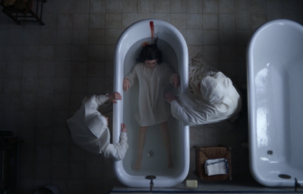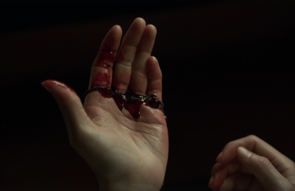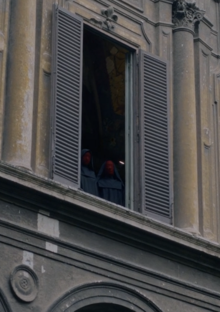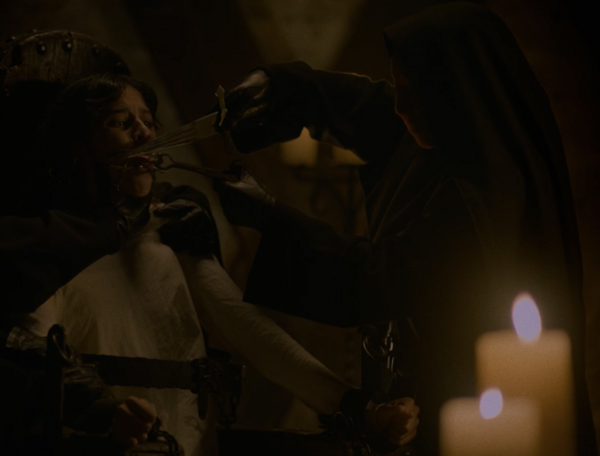 Важным художественным приемом, который нас пугает — это обстановка. Светлые храмы, дом божий, место куда мы приходим за спасением, совершенно неожиданно превращается в злачное темное место, в котором нас ждет лишь страх и боль.