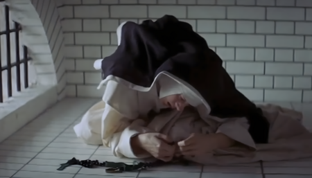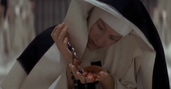 Затем своим излюбленным приемом режиссер не просто отбирает у нас святого, он превращает его в источник зла и страха. В первую очередь это достаточно иронично, но помимо этого, этому есть и историческая предпосылка в лице реального человека — Матери Терезы, с ее жестоким подходом в обращении с пациентами.